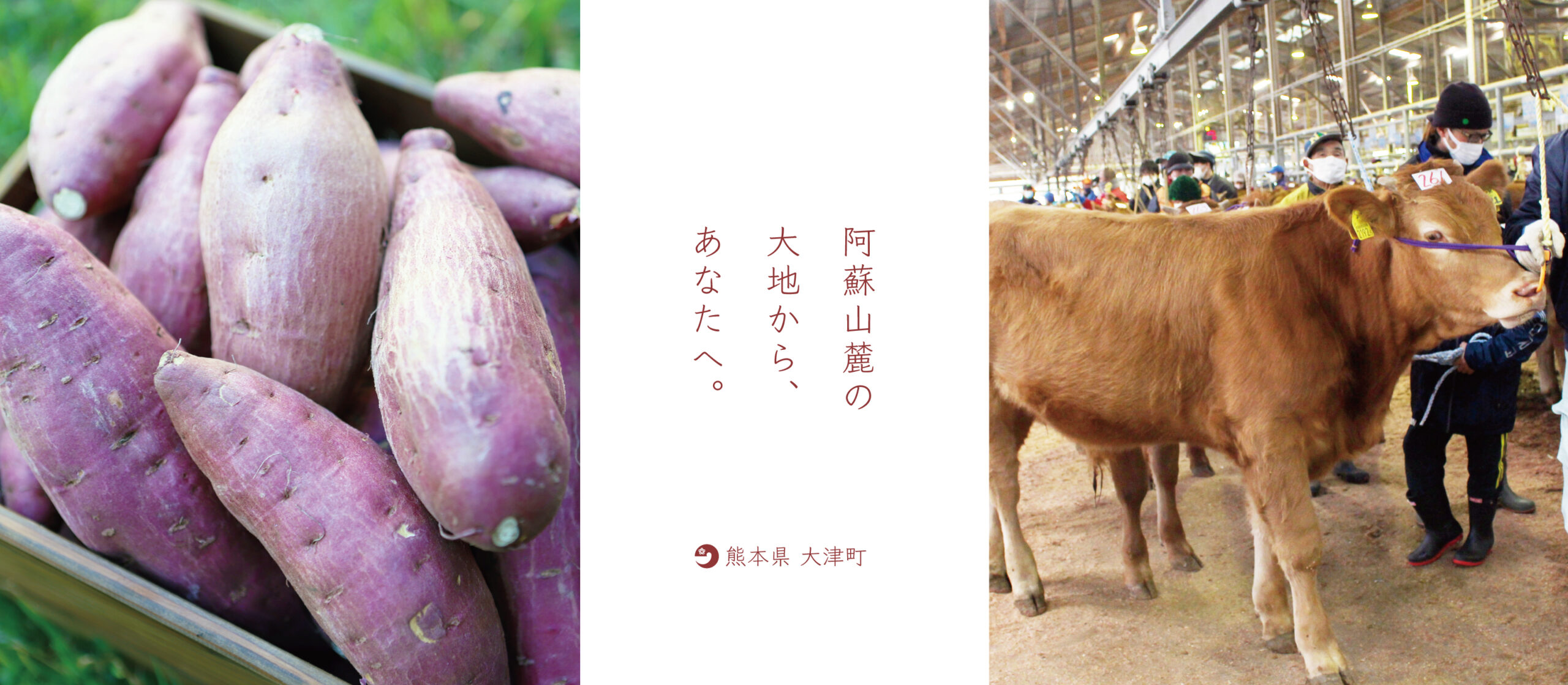 熊本県大津町は、雄大な阿蘇山の麓に位置し、南には阿蘇くまもと空港、西には熊本城が位置する熊本の交通結節点。古くは参勤交代の宿場町として栄えた歴史があります。また本田技研工業㈱熊本製作所をはじめとする工業が盛んな土地で、町のすぐ隣には台湾半導体メーカーTSMCの日本法人JASMの工場も新設され、さらなる工場進出も増加しています。その反面、阿蘇の雄大な自然の恩恵を受け、農業や畜産も盛んで、特産品の「からいも」をはじめ、牛肉や豚肉も地域ブランドが豊富にあり、自然と産業、そして文化が調和する町です。